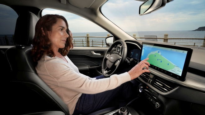 Tiene un muy buen sistema multimedia SYNC 4 con navegador incorporado y una pantalla táctil de 13,2 pulgadas, que funciona bastante bien y es compatible con Android Auto y Apple Car Play. Y viene de serie con cargador inalámbrico para el móvil, incluso en el acabado básico (Titanium).