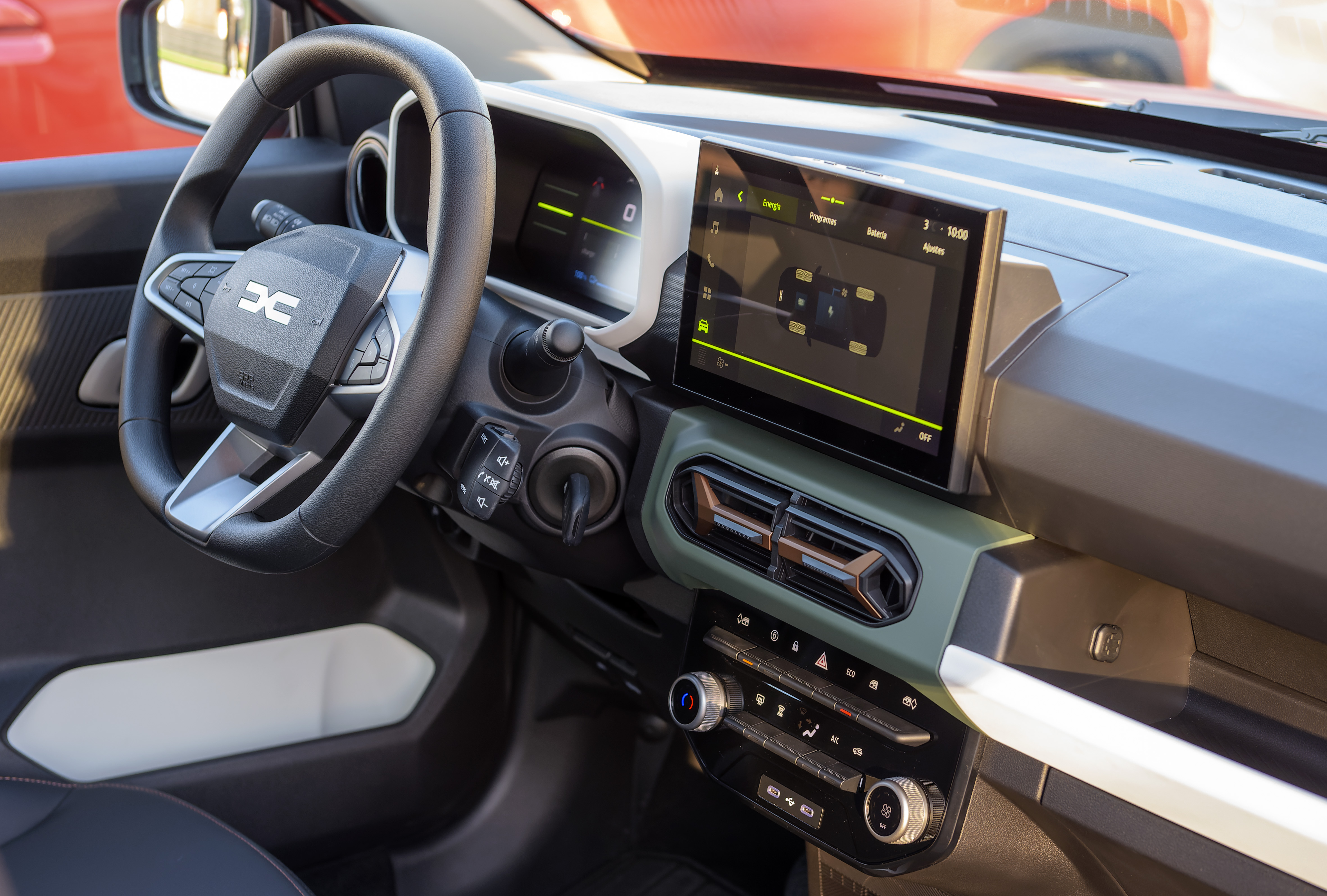 Además, en el acabado más elevado, el denominado Extreme, el Dacia Spring incluye una pantalla multimedia central de 10 pulgadas, similar a la del Dacia Duster, que incluso incluye conectividad inalámbrica con Android Auto y Apple Car Play.